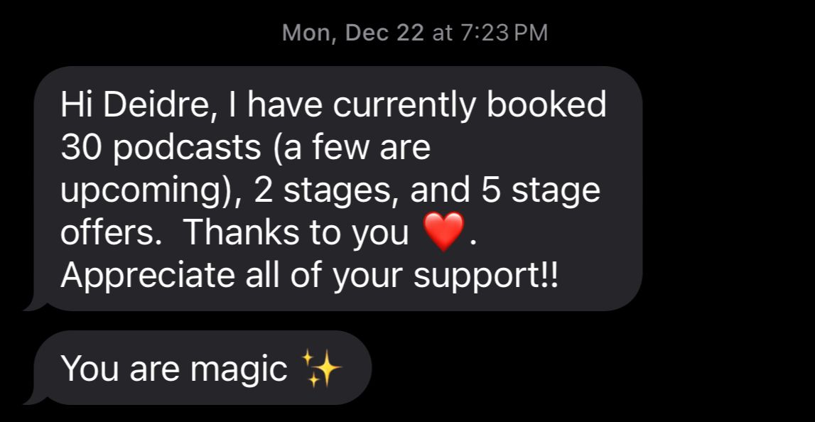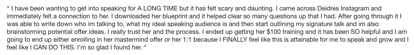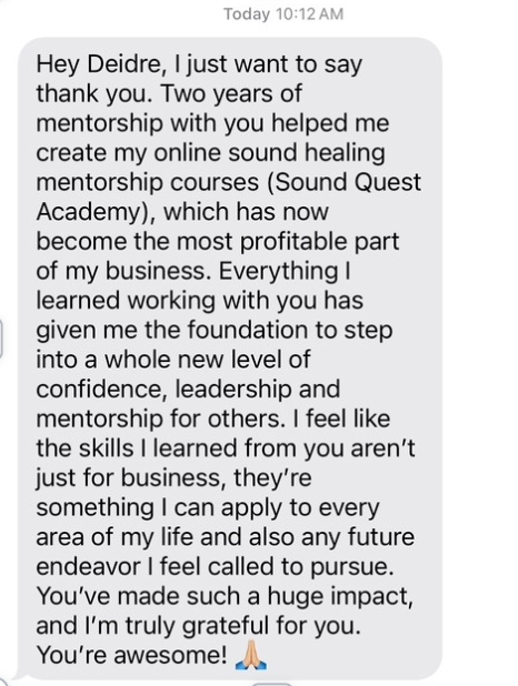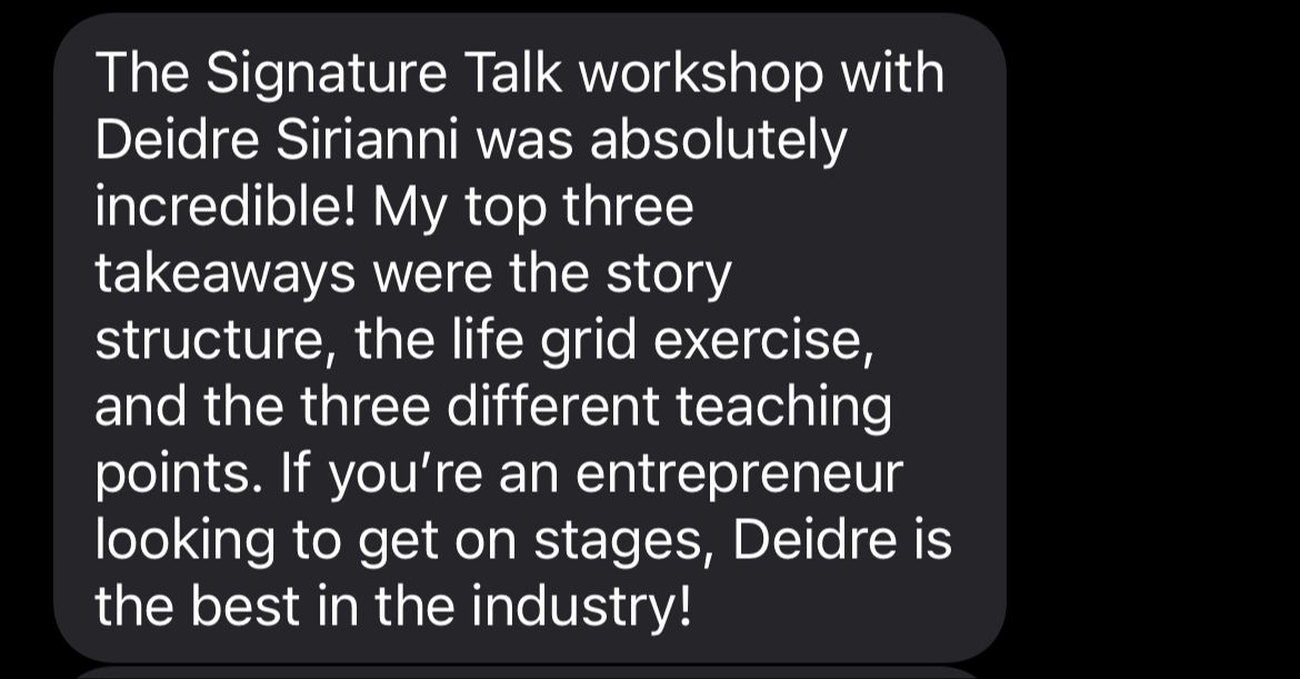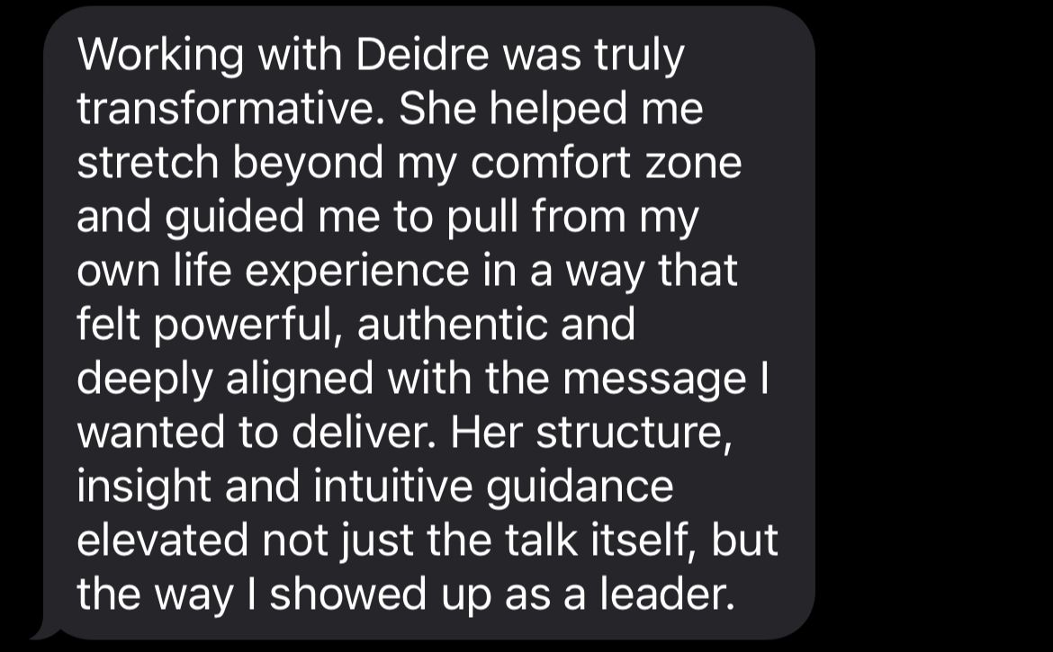 With 16 years of building businesses, and almost a decade of speaking on stages, she helps you quantum leap your vision into reality. Inside her mentorship programs she helps her clients turn every speaking opportunity into tens of thousands of dollars through mastering story telling, speaking, getting onto the right platforms and teaching the business of speaking. If you have a message to share, and know you are here to make a bigger impact in the world, Deidre is the person you want to be working with!